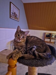 Immer wenn sich Tierfreunde für ihn interessiert haben, hat er sich schnell in irgendeinem Kratzbaum versteckt.